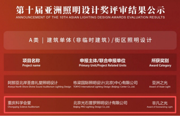 近日,公司牵头投资建设运营的中国重庆·科学会堂项目收到由亚洲照明设计师协会(AALD)发来的奖状。在2025年第十届亚洲照明设计大奖颁奖礼上,中国重庆·科学会堂获得“非凡之光”荣誉称号。
