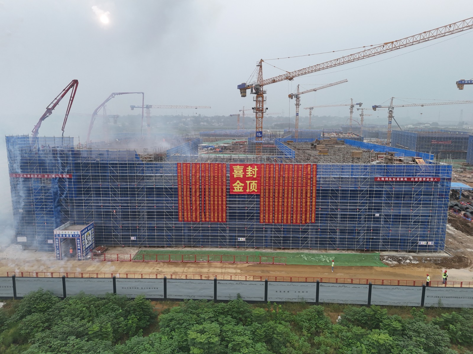 9月30日,伴随着最后一方混凝土的浇筑到位,15号楼圆满完成了主体结构封顶任务,成为本项目15栋主体建筑中首栋封顶的单体。首栋封顶标志着项目建设正式由主体结构施工阶段逐渐转入砌体、二次结构及装饰装修等多专业、多工种交叉作业的新阶段。