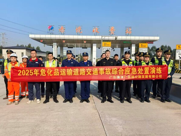为检验危险化学品道路运输“一路一策一图”成果的实用性和可操作性,提升突发环境事件应急响应、监测处置和协同作战能力,切实筑牢高速公路生态环境安全防线,1月15日,广东佛清广项目公司组织开展危化品道路运输交通事故综合应急处置实战演练。