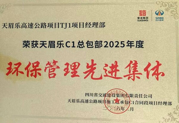 近日,天府新区经眉山至乐山高速公路TJ1标(以下简称“天眉乐高速TJ1标”)凭借在生态保护、绿色施工、资源集约利用等方面的系统性成效,成功斩获天眉乐C1总包部2025年度“环保管理先进集体”称号。这是继获评成都市“绿色标杆”工地、入选绿色低碳交通强国建设专项试点后,项目在环保领域收获的又一重要荣誉,标志着其生态建造实践获得行业主管部门、业主单位与社会各界的高度认可。
