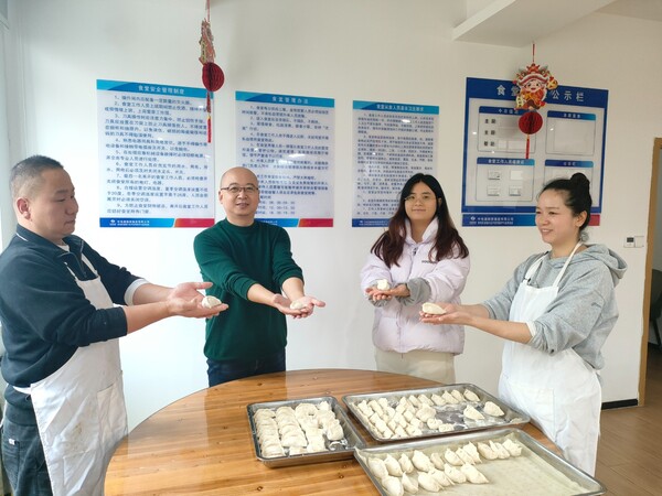 活动现场洋溢着温馨祥和的氛围。总承包部提前备好了丰富的食材,大家分工协作,和面、擀皮、调馅、包饺子……大家一边交流包饺子的经验与方法,一边分享南北习俗的差异,整个食堂欢声笑语不断。没过多久,形态各异的饺子便摆满了盘子。有饱满圆润的月牙饺,有精致小巧的元宝饺,还有独具创意的麦穗型饺。每一个饺子都蕴含着大家对美好生活的向往。