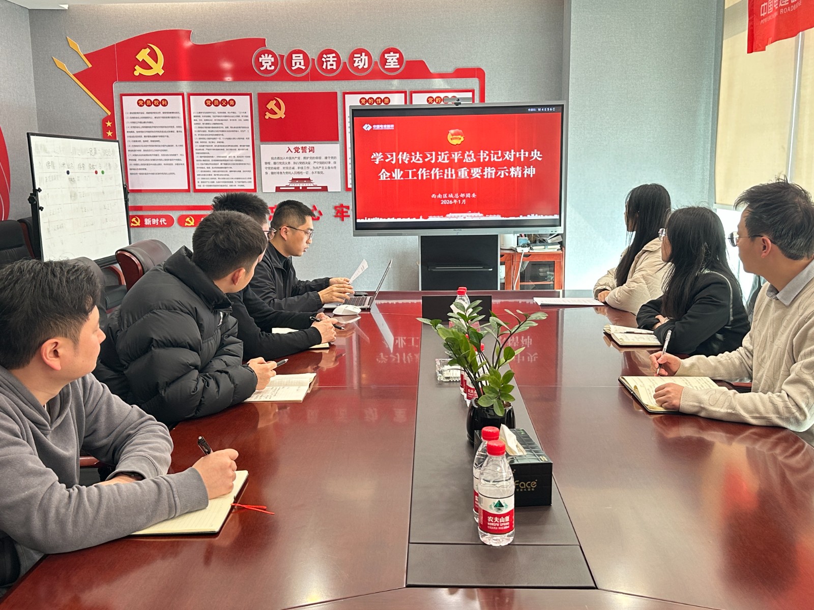 1月12日,西南区域总部团委组织召开专题学习会,集中传达学习习近平总书记对中央企业工作的重要指示精神及党的二十届四中全会精神。