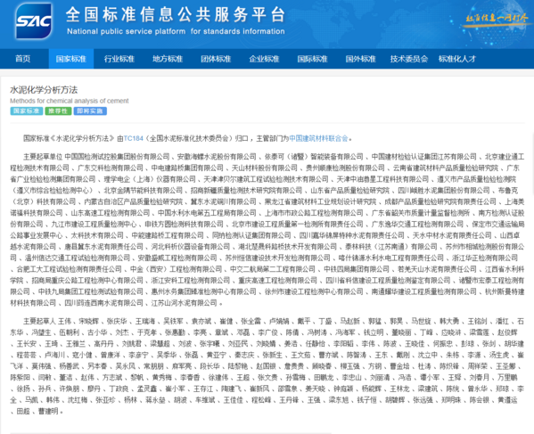 该标准明确了水泥中硅酸盐、铝酸盐、铁酸盐等主要成分,以及氯离子、硫化物等关键指标的检测技术,涵盖湿法化学分析与X射线荧光分析等方法。 本标准由全国水泥标准化技术委员会归口,中国建筑材料联合会作为主管部门。