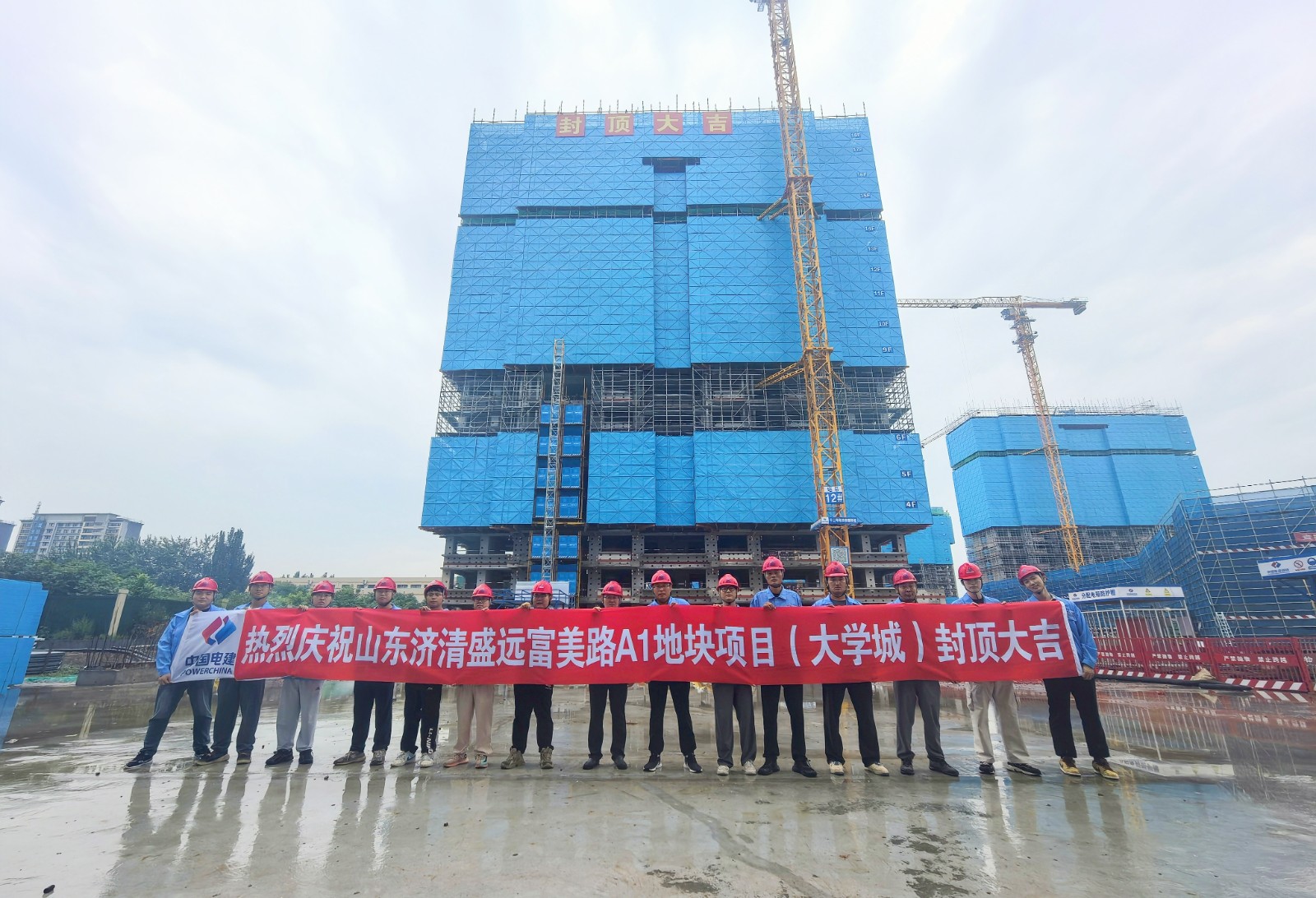 山东济清盛远富美路A1A2地块总承包部将以此次主楼封顶为新的起点,始终将“建精品工程、树央企标杆”作为核心使命,持续强化全过程管控,以更高标准、更严要求推进二次结构及装饰装修工程,确保将项目打造成为经得起时间检验的品质工程,为助力区域高质量发展、提升城市功能品质贡献力量!